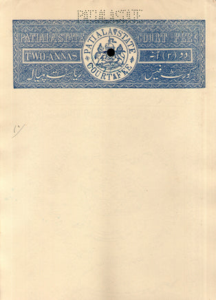India Fiscal Patiala State 2As Blank Stamp Paper Type10 KM102 Court Fee # 10836L