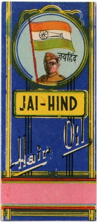 India JAI HIND Flag Subhash Chandra Bose Patriotic Vintage Hair Oil Label RARE