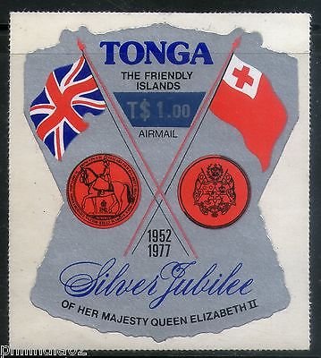 Tonga 1977 $1 Flags and Arms of Britain Surcharge Odd Shaped Sc C238 MNH # 1881