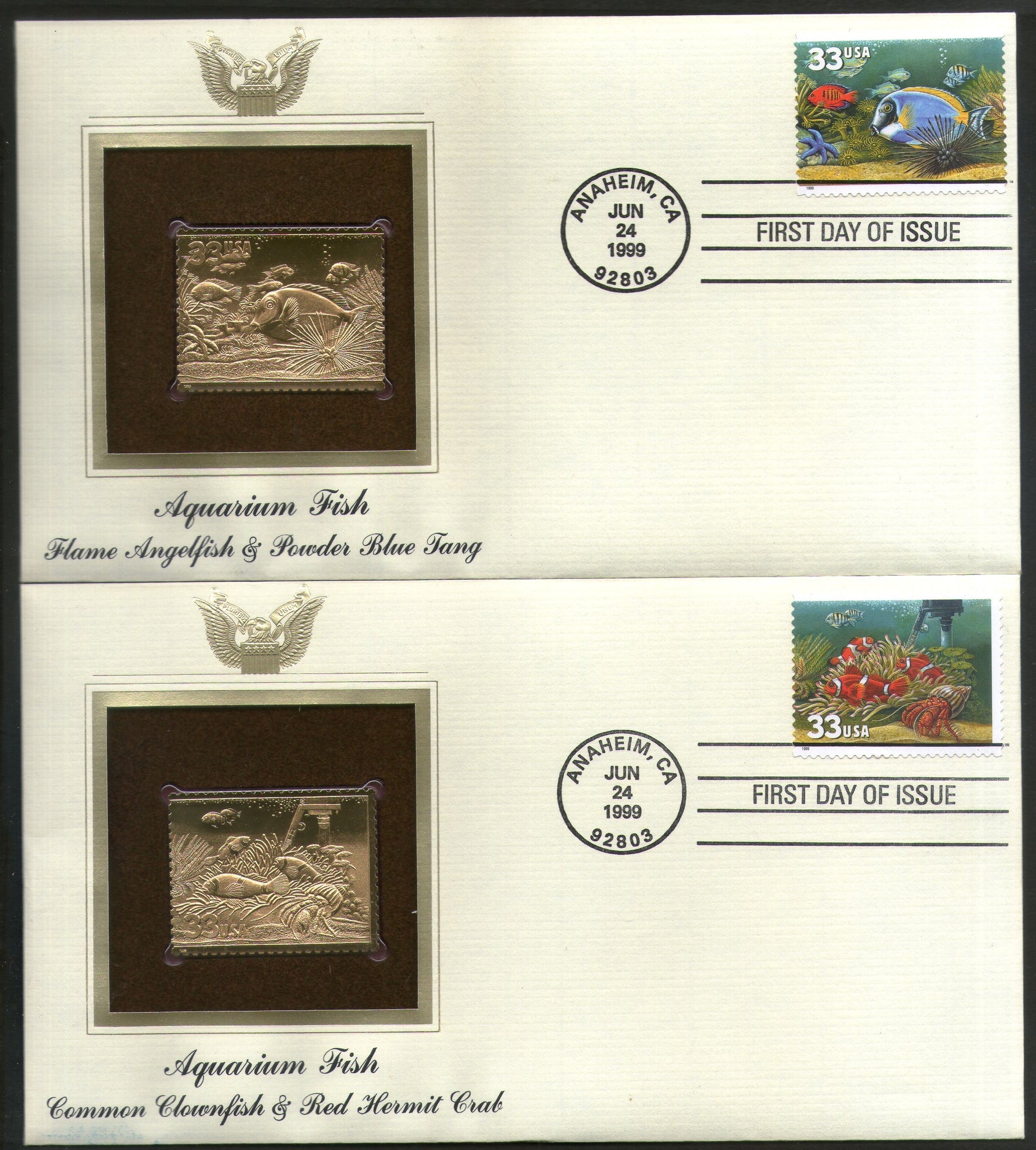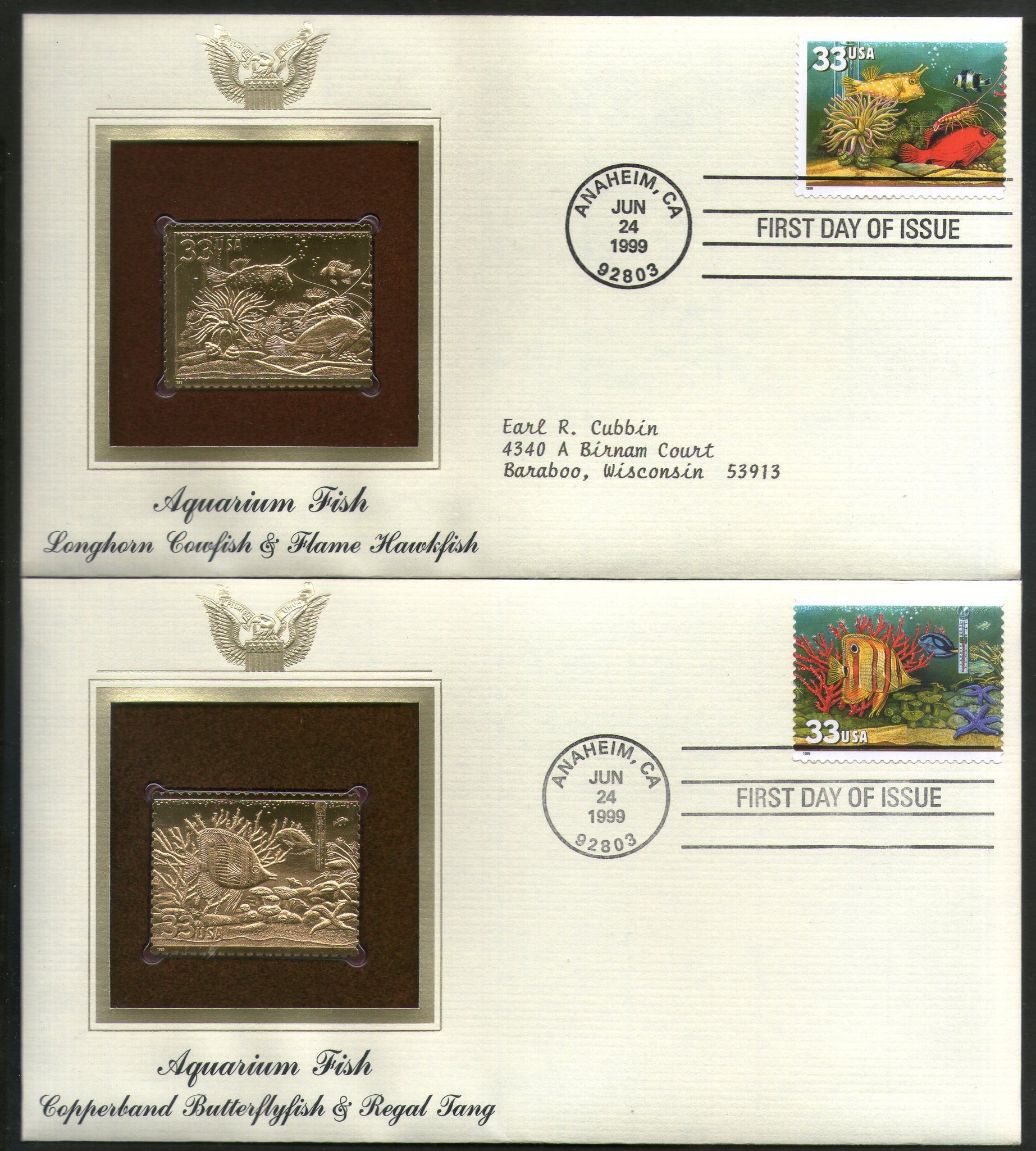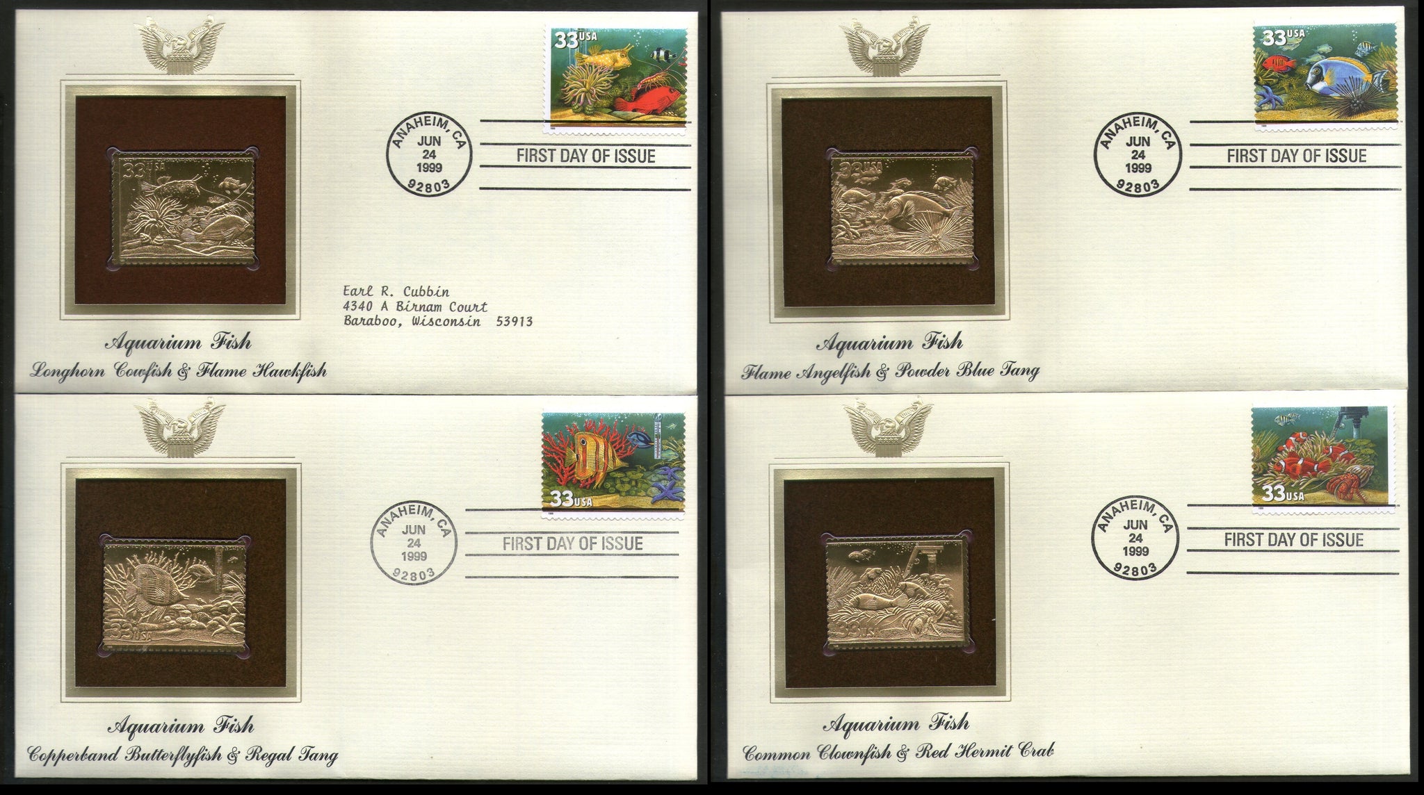 USA 1999 Aquarium Reef Fish Coral Marine Life Gold Replicas Cover Sc 3317-20 # 155
