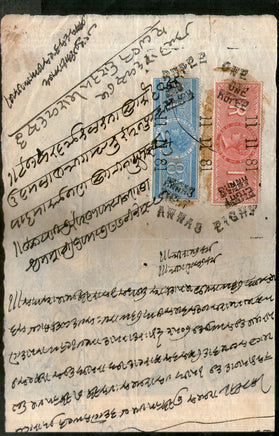 India Fiscal Qv 8As. & 1Re. Special Adhesive on Private Hundi Paper Revenue Court Fee # 9082C