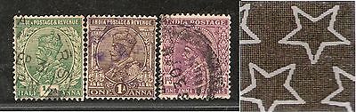 India 3 Diff KG V ½A 1A & 1A3p ERROR WMK - Multi Star Inverted Used as Scan 3489