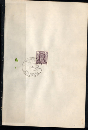 India 1967 1 Re Ashokan Service Phila-S212 FD Cancelled on Plain Paper # 9122