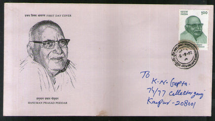 India 1992 Hanuman Prasad Poddar Phila-1348 Used FDC # 16455