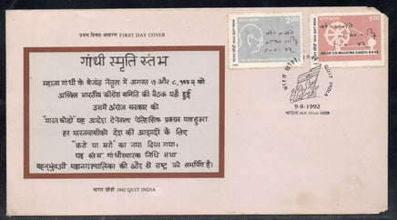 India 1992 Quit India Movement Mahatma Gandhi 2v Phila-1343-44 FDC