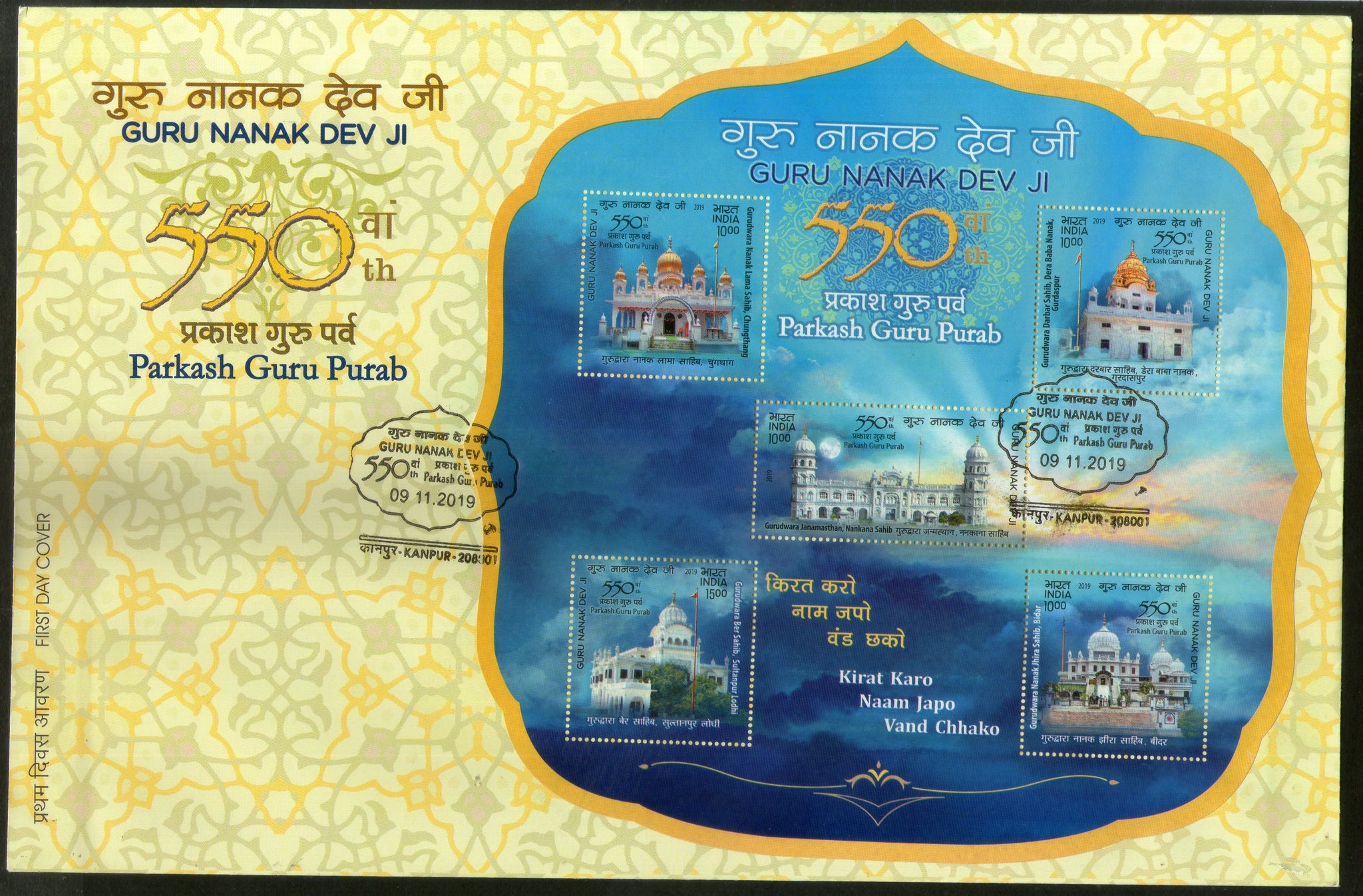 India 2019 Guru Nanak Dev Ji 550th Birth Anniv Gurudwara Sikhism Odd Shape M/s on FDC