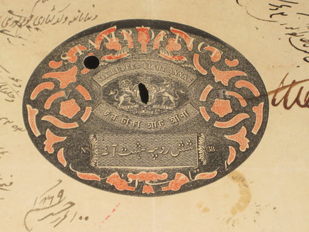 India Fiscal 6 Rs.8As Congreve Stamp Paper Type 13 Die-38 Coat of Arms # B030