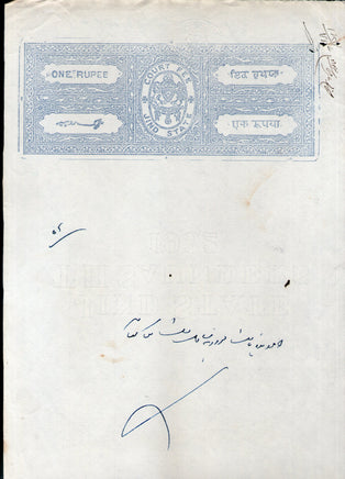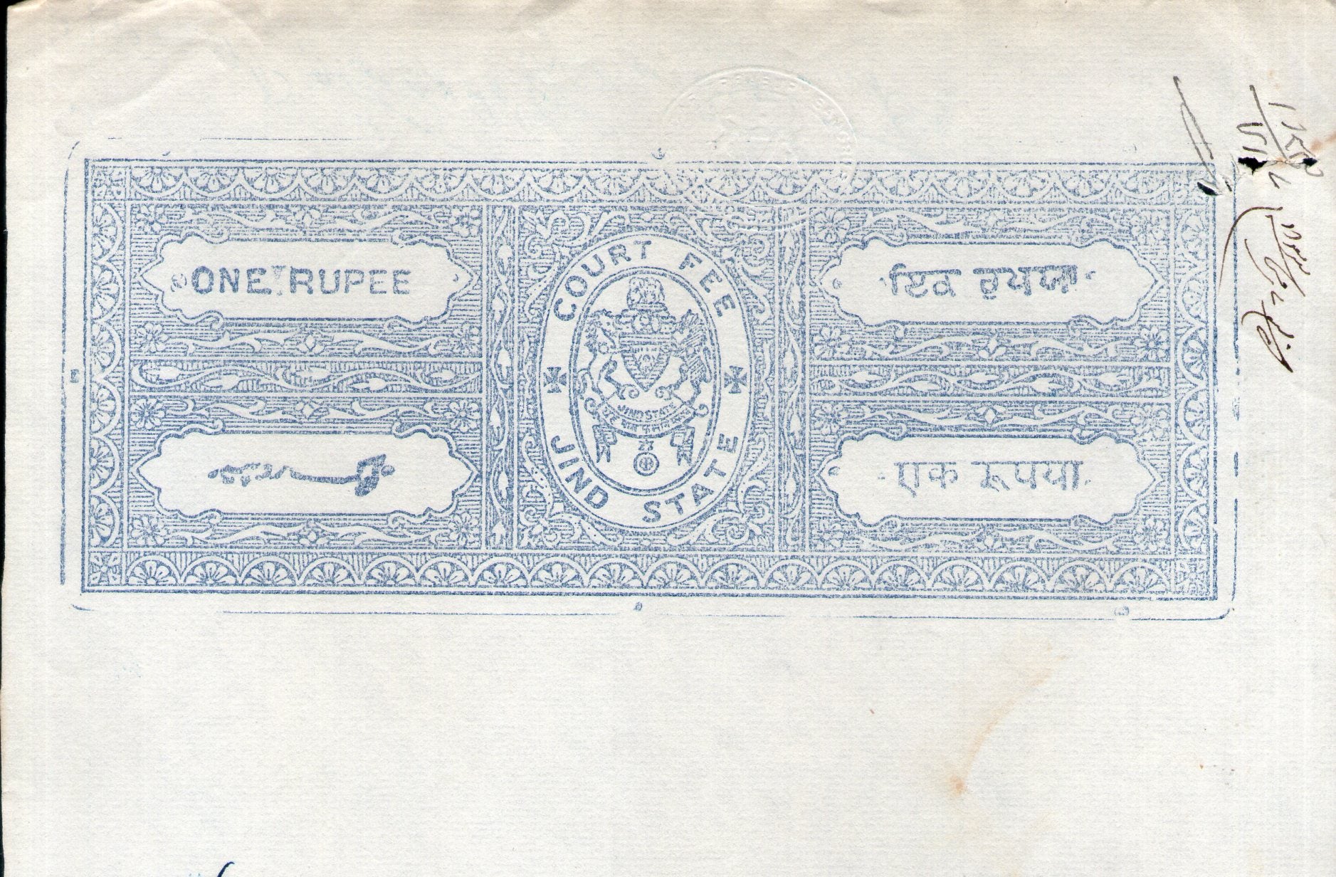 India Fiscal Jind State 1 Rs Type 10 Revenue Court Fee Stamp Paper # 10105C