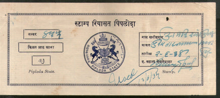 India Fiscal Piploda State 8 As Court Fee Revenue Stamp Type 6 KM 64 # 6657D