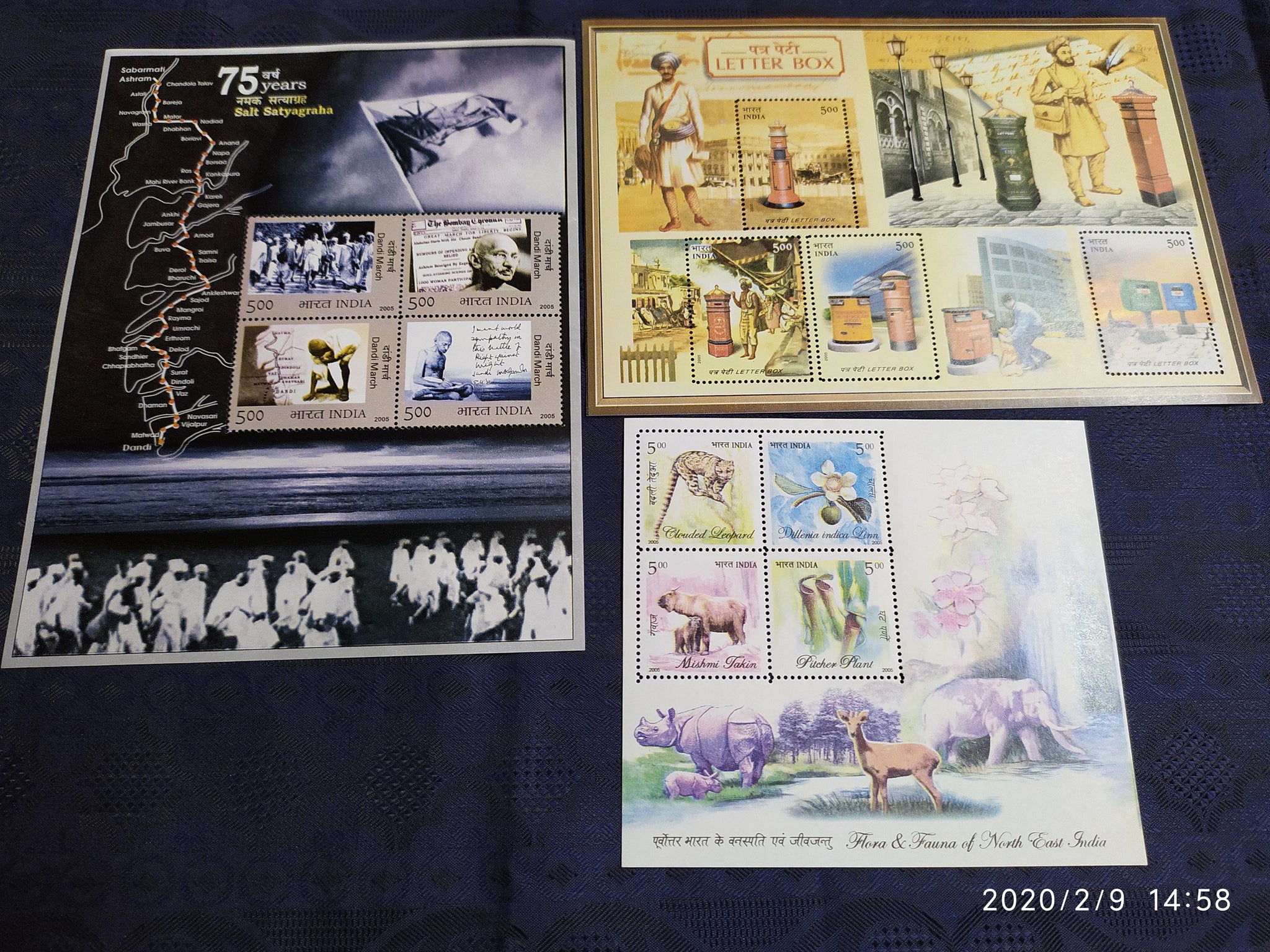 India 2005 Year Pack of 3 M/s on Mahatma Gandhi Dandi March Fauna & Flora Flower Wildlife Letter Box MNH