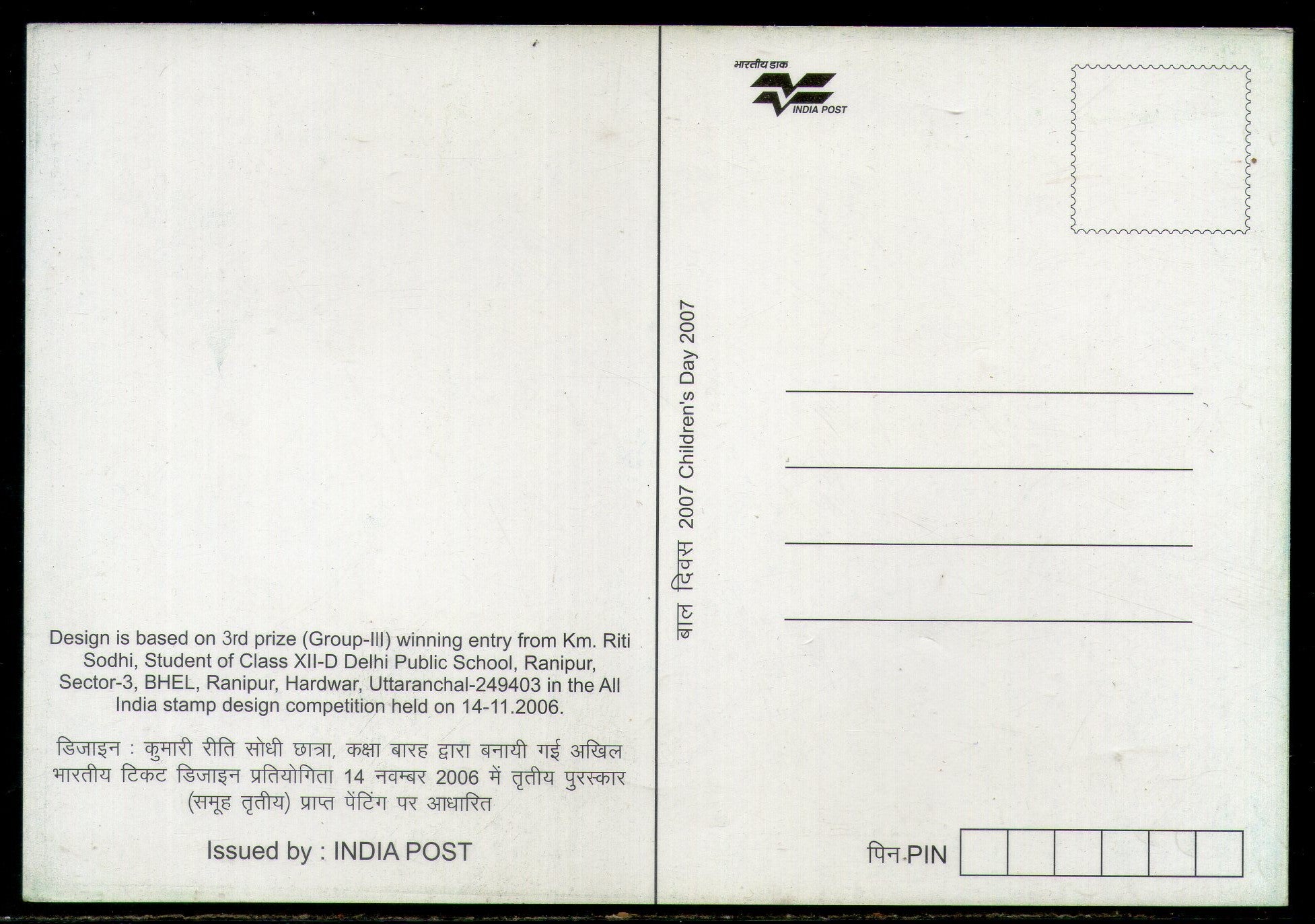 India 2007 Children's Day Paintings Max Card Presentation Pack Without Stamp & Cancelled # 7539