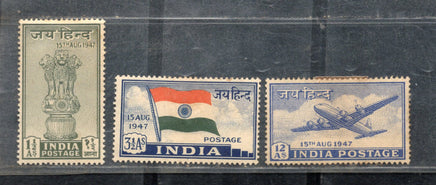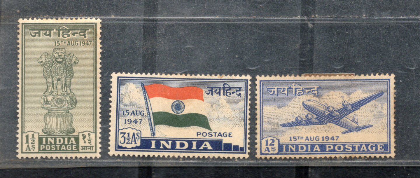 India 1947 Year Pack of 3 Stamps Jai Hind Independence Ashokan Lion Capital Flag Aeroplane Phila-284a Mounted Mint # 1158