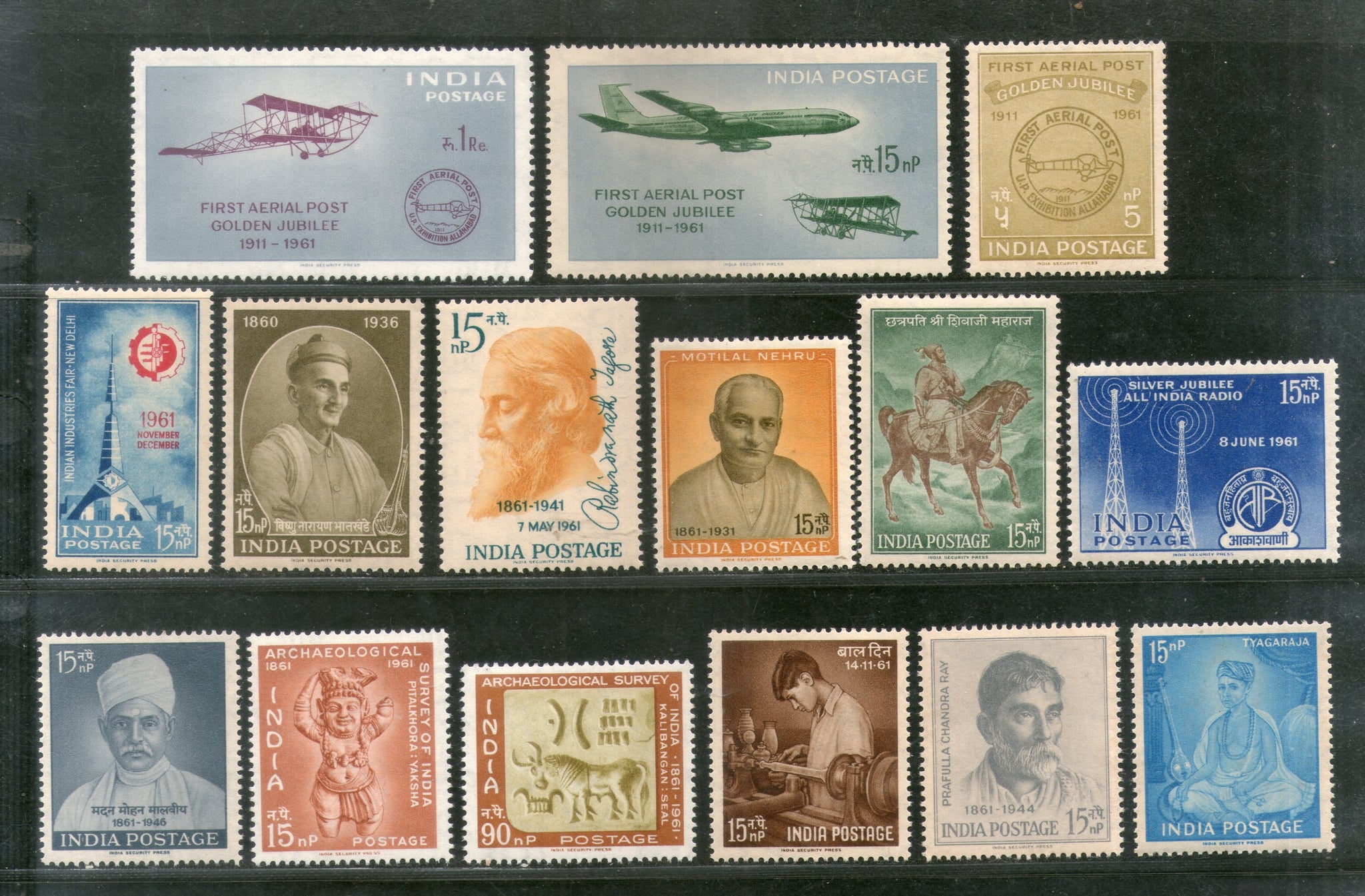 India 1961 Year Pack 16 Stamps Air Mail Flight Shivaji Radio Tagore Children's Day Archeological Survey MNH