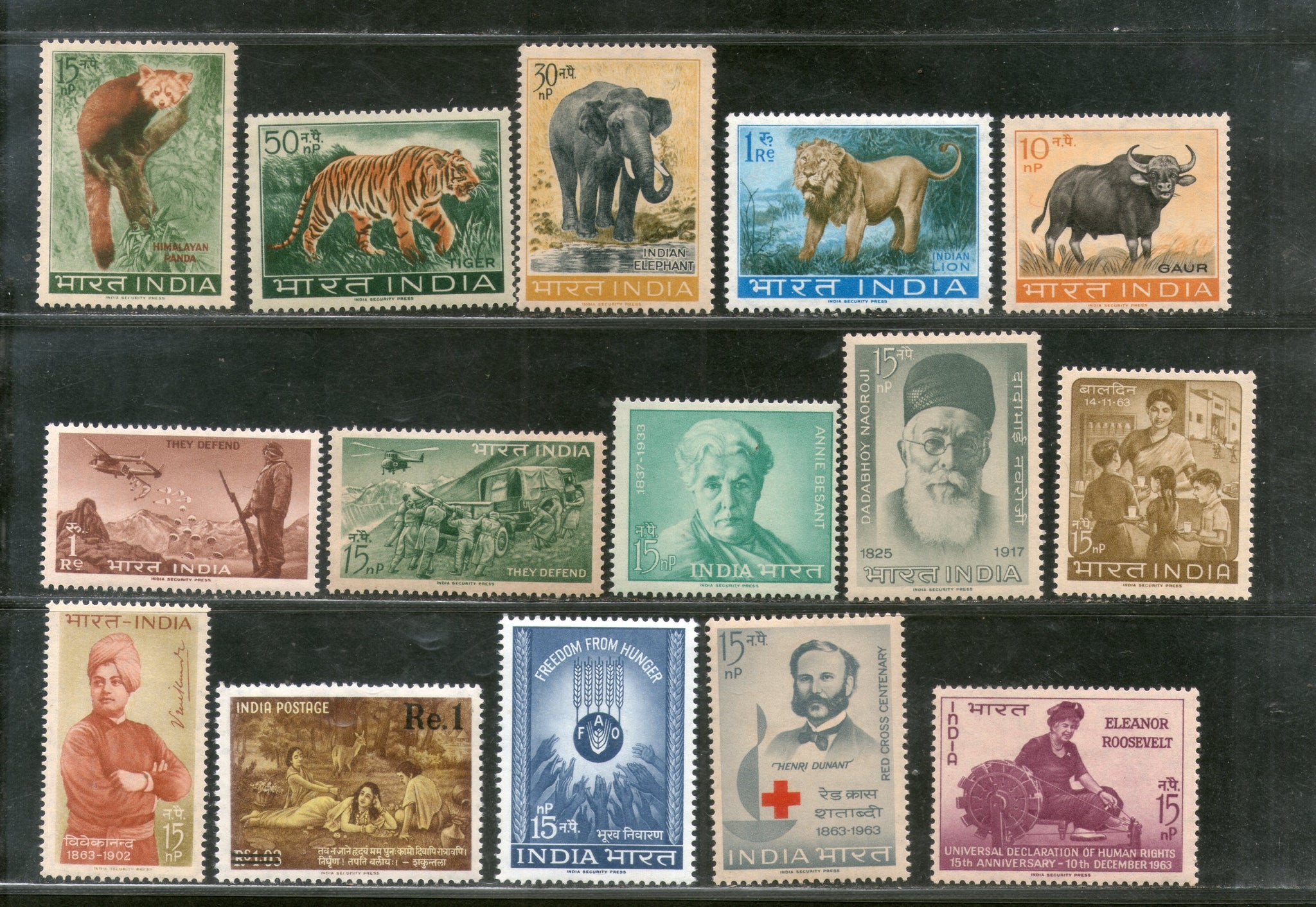India 1963 Year Pack 15 Stamps Vivekananda Kalidas Red Cross Wildlife Military Children's Day MNH