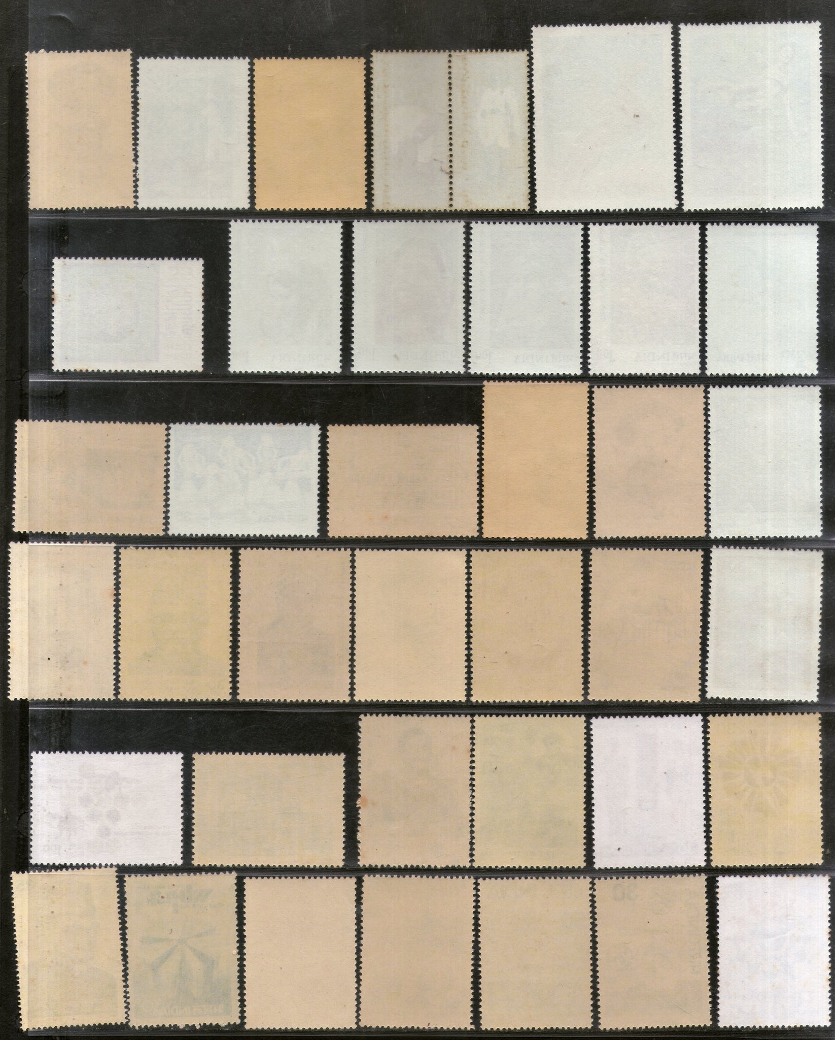 India 1980 Year Pack of 39 Stamps Mahatma Gandhi Teresa Shivaji Rowland Hill Bird Costume Brides Olympic MNH