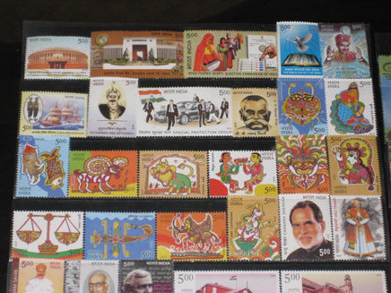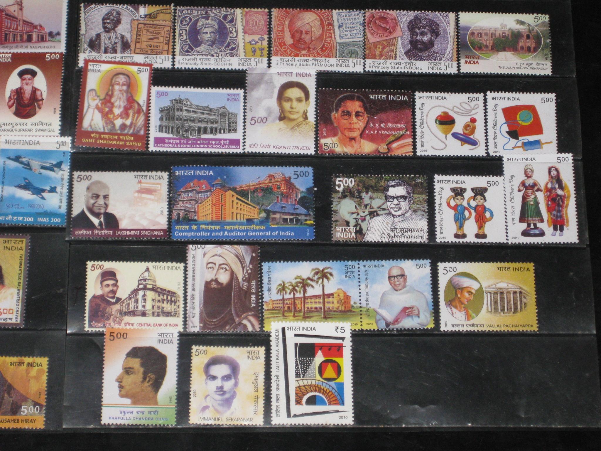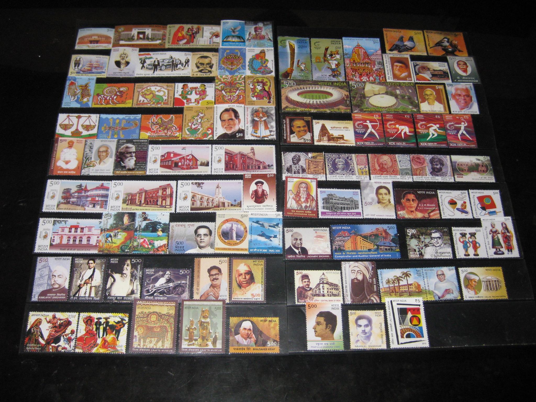 India 2010 Year Pack of 91 Stamps Gandhi Astrological Sign Games Music Dance Sport Baton MNH