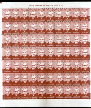 India 2019 11th Def. Series Makers of India 200p Atal Bihari Vajpayee Phila D189 Full Sheet of 70 MNH