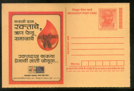India 2008 Aids Blood Donated Health Meghdoot Post Card Postal Stationery # 512