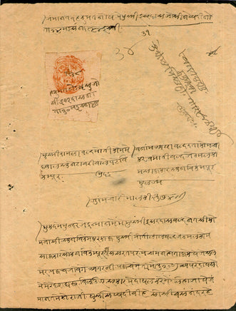 India Fiscal Jaisalmer State 8 As Coat of Arms Type 2 KM 24 Court Fee on Document Revenue # 10821D