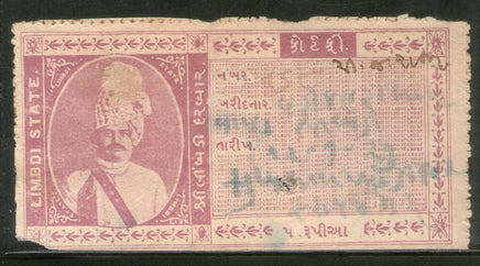 India Fiscal Limbdi State 5Rs King Type 8 KM 92 Court Fee Revenue Stamp # 222