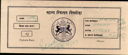 India Fiscal Piploda State 8 As Court Fee Revenue Stamp Type 6 KM 64 # 6657C