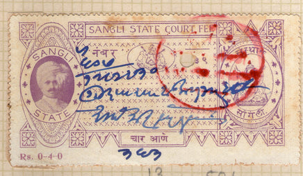 India Fiscal Sangli State 4As King Type 1 KM 13 Court Fee Revenue Stamp # 175