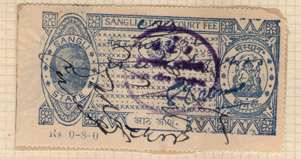 India Fiscal Sangli State 8As King Type 2 KM 36 Court Fee Revenue Stamp # 593