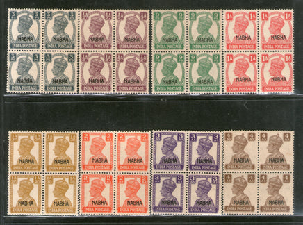 India Nabha State 8 Diff. KG VI Postage and Service Stamps BLK/4 Cat. £80+ MNH # 5852B