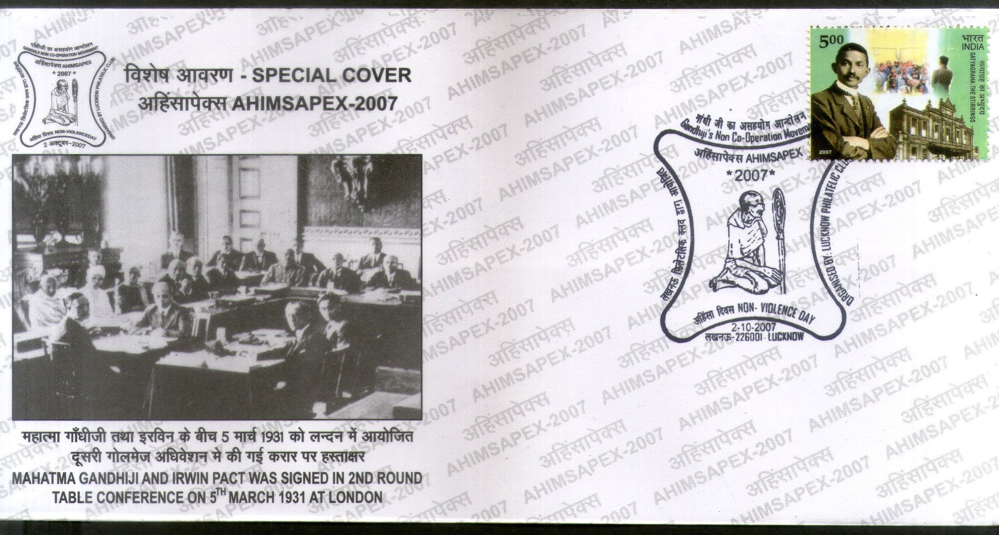India 2007 Mahatma Gandhi AHIMSAPEX Round Table Conference London Special Cover # 7264