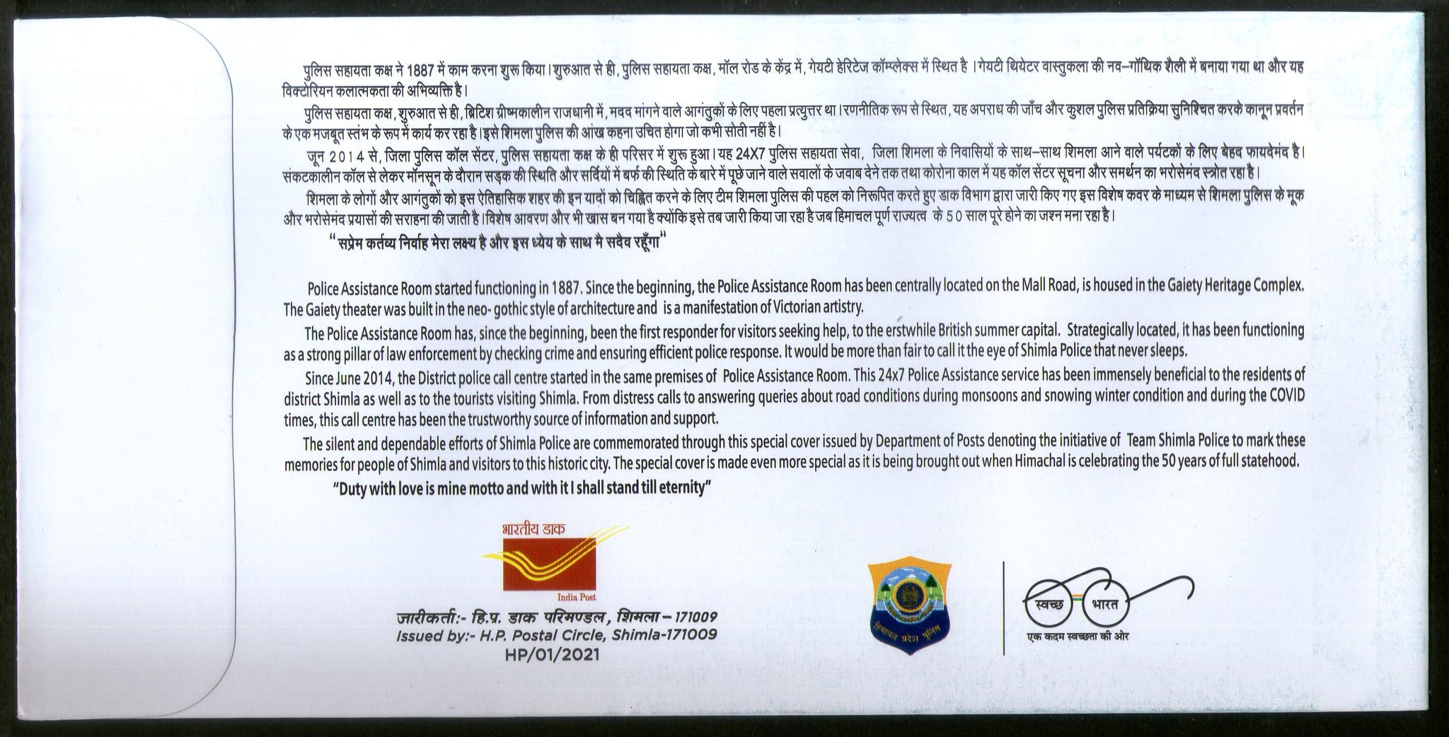 India 2021 Heritage Police Assistance Room Shimla Architecture Special Cover # 18423