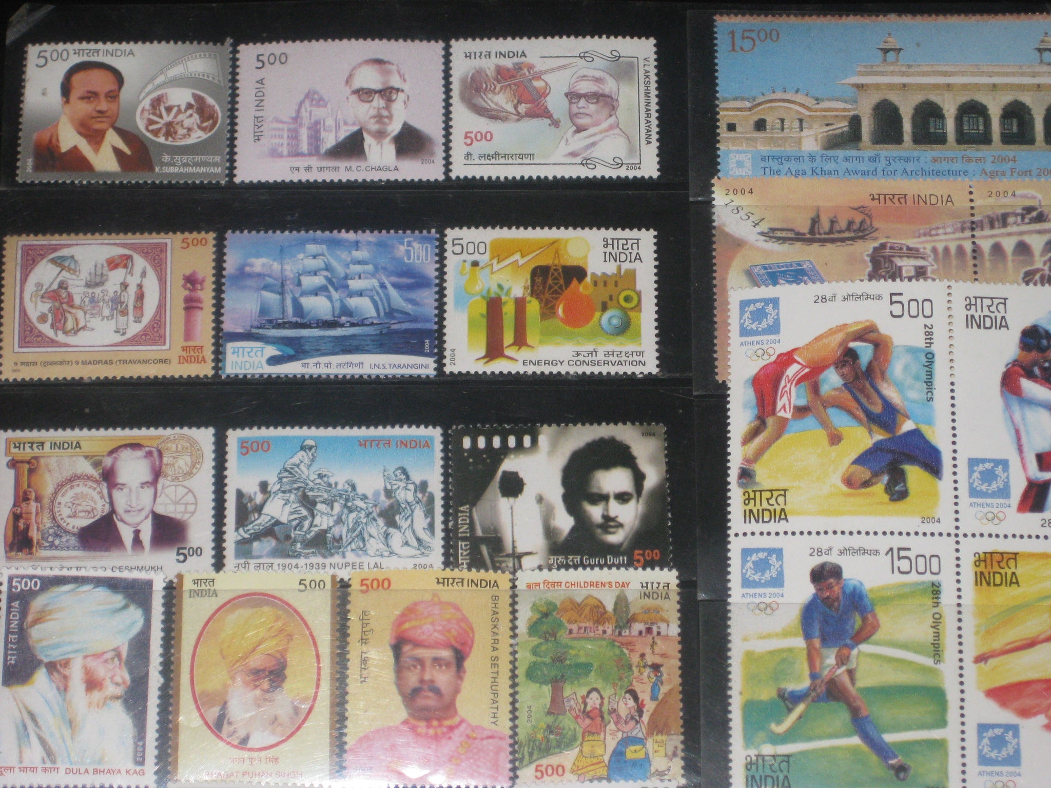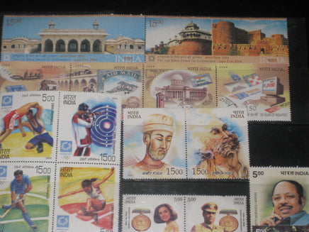 India 2004 Year Pack 55 Stamps Music Tajmahal Trignometrical Joint Issue Cinema MNH