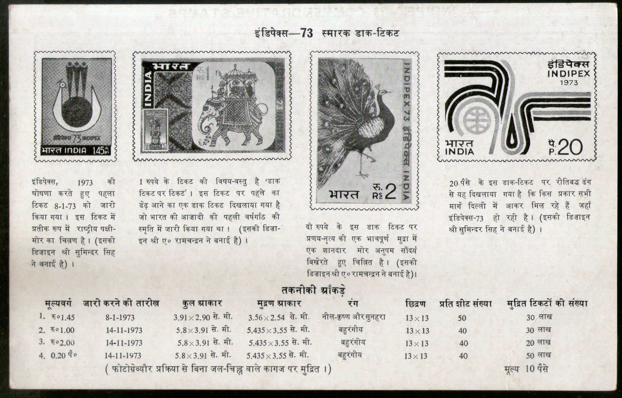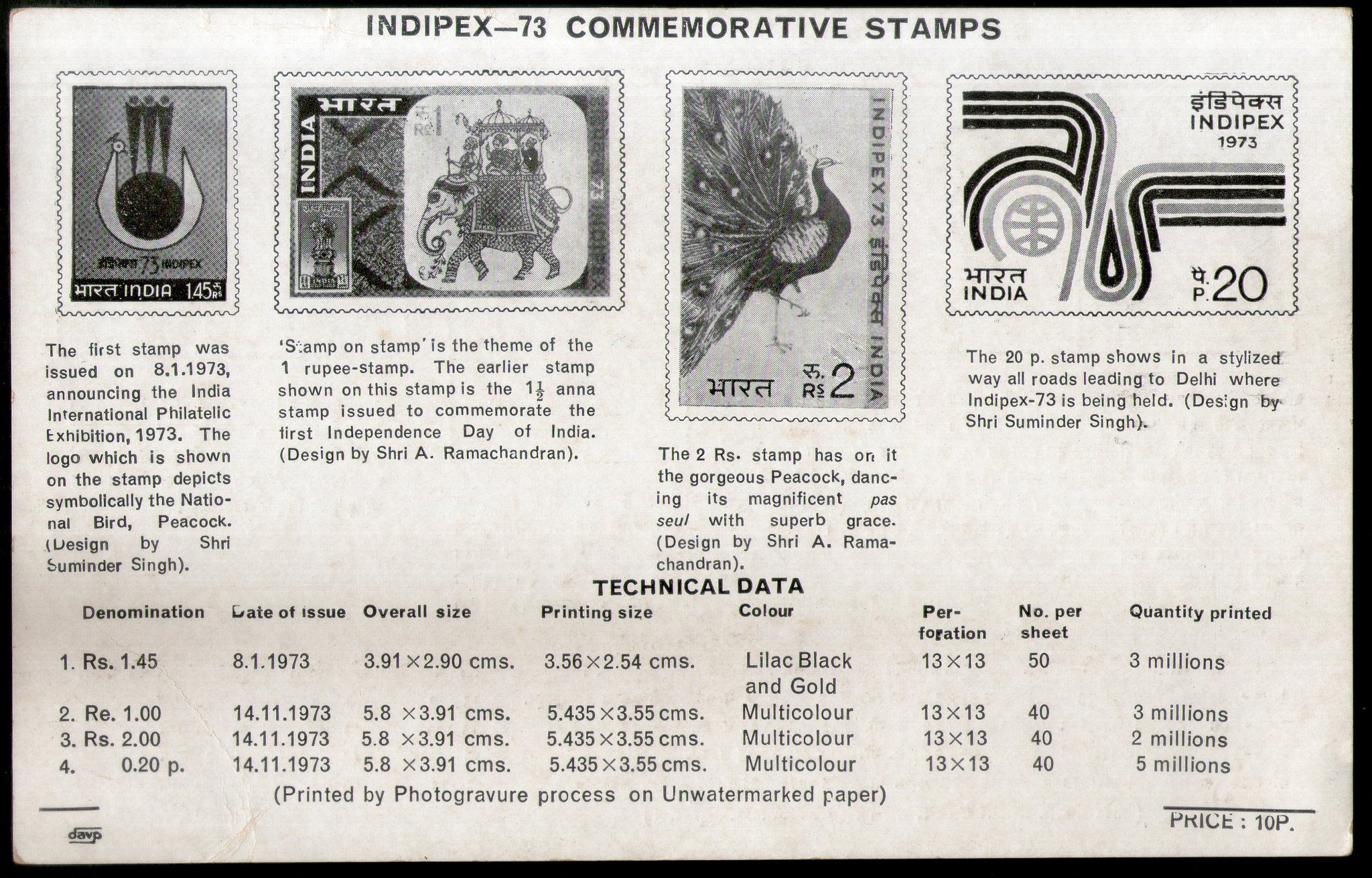 India 1973 INDIPEX Philatelic Exhibition Peacock Elephant Phila-595a Blank Folder