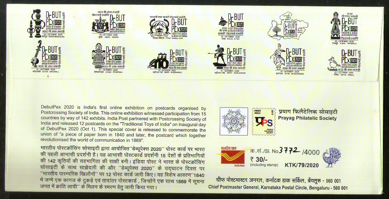 India 2020 151 Years of Post Card Philately Day Toy Special Cover # 18748
