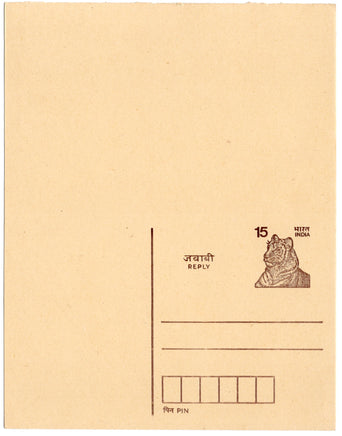 India 1988 15p+15p Tiger Big PIN BOX REPLY Post Card Mint # 19178