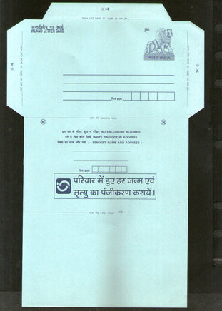 India 1999 1.50Rs Lion Inland Letter Card with Birth & Death Registration Advertisement ILC MINT # 517