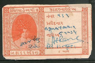 India Fiscal Chuda State 8As King Type 15 KM 154 Court Fee Stamp # 3995