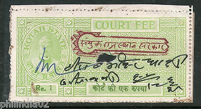 India Fiscal Kotah State Re. 1 Type 30 KM 304 Court Fee Stamp Revenue # 4046B
