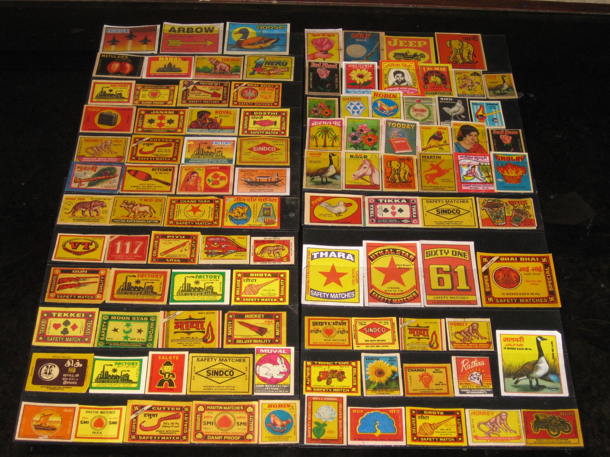 India 100 Diffrent Match Box Labels Elephant Bird Lion Monkey Ship Rose Tiger