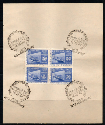 India 1969 Inter-Governmental Maritime Consultative Org. IMCO Ship Phila-497 BLK/4 FD Cancelled on Plain Paper