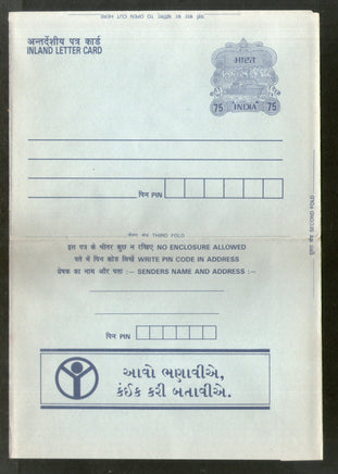 India 1992 75p Ship Inland Letter Card with Adult Education Advertisement ILC MINT # 309FL