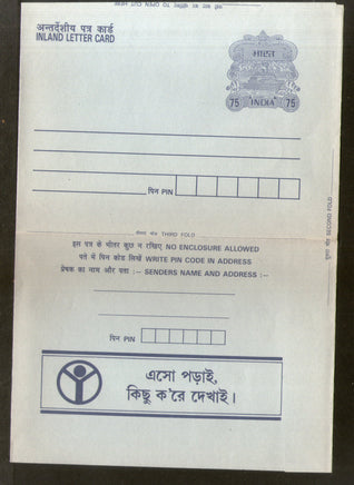 India 1992 75p Ship Inland Letter Card with Adult Education Diff. Language Advertisement ILC MINT # 311FL