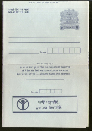 India 1992 75p Ship Inland Letter Card with Adult Education Diff. Language Advertisement ILC MINT # 315FL