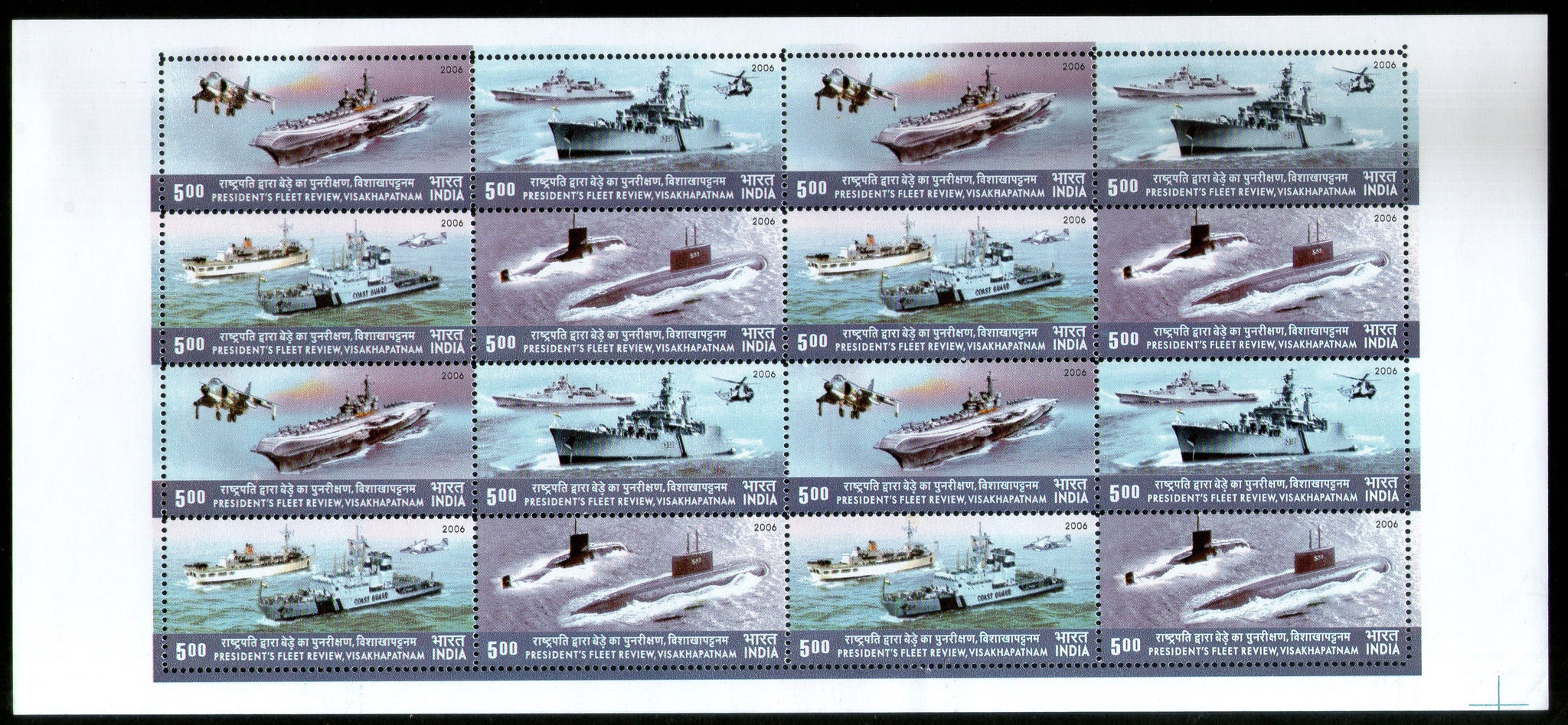 India 2006 President's Review Fleet Ship Se-tenant Phila-2170 Full Sheet MNH