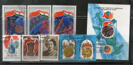 Russia USSR 9 Diff. Indian Themes Indira Gandhi Flag Red Fort Ashoka Used Stamps # 13134