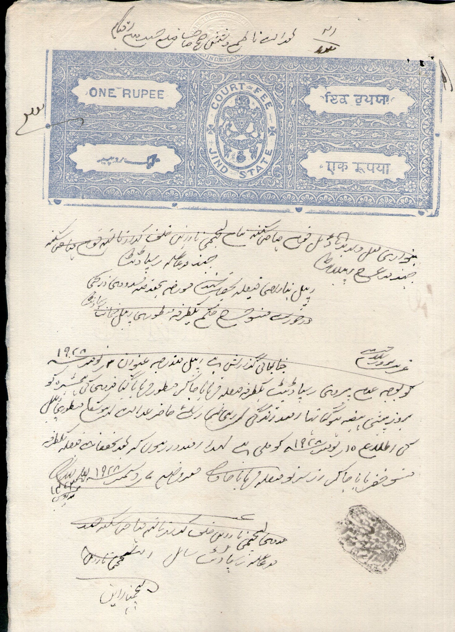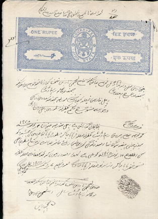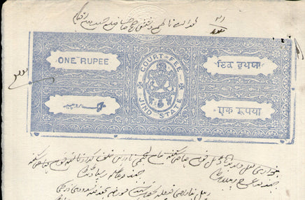 India Fiscal Jind State 1 Rs Type 10 Revenue Court Fee Stamp Paper # 10105B