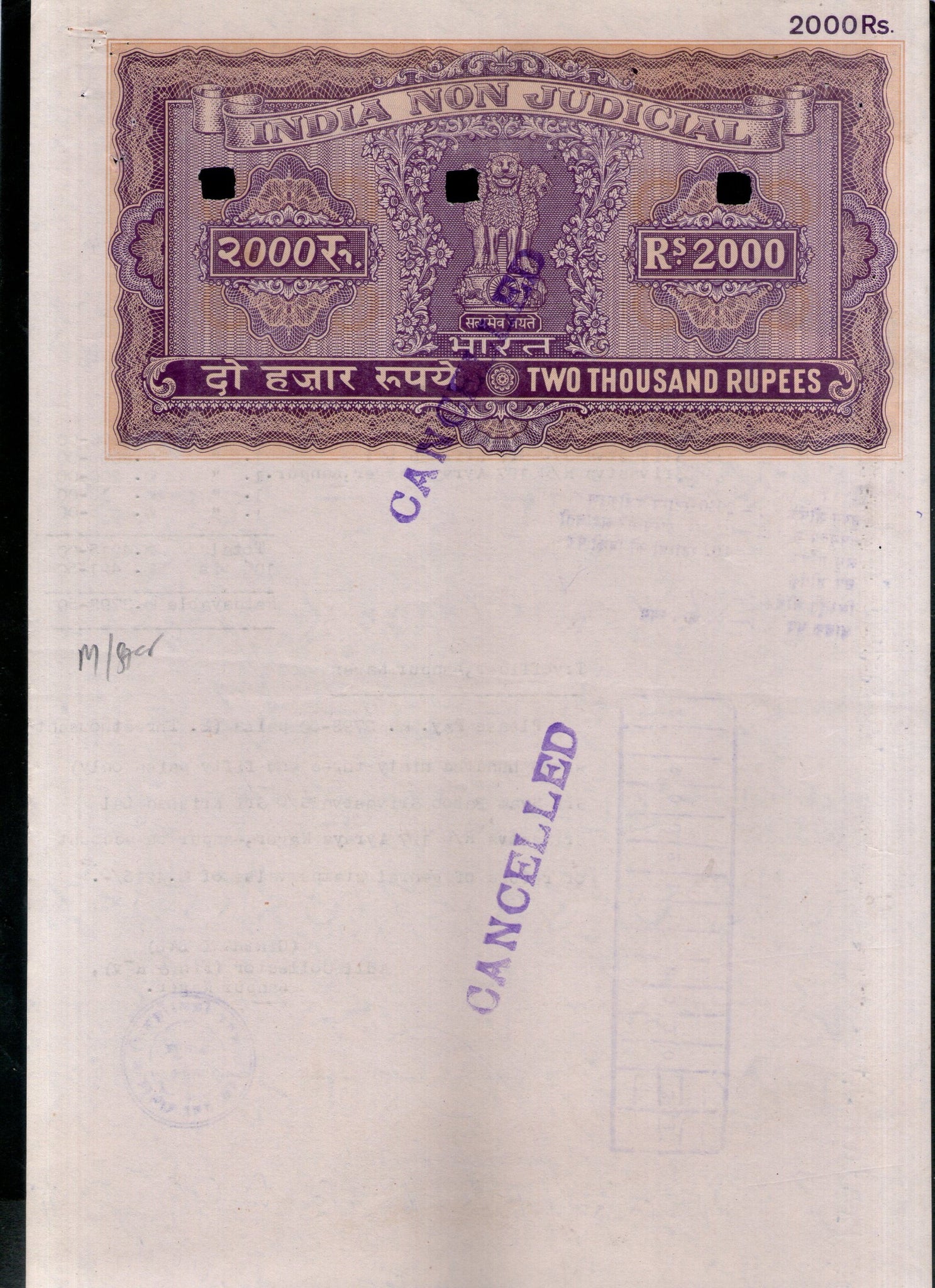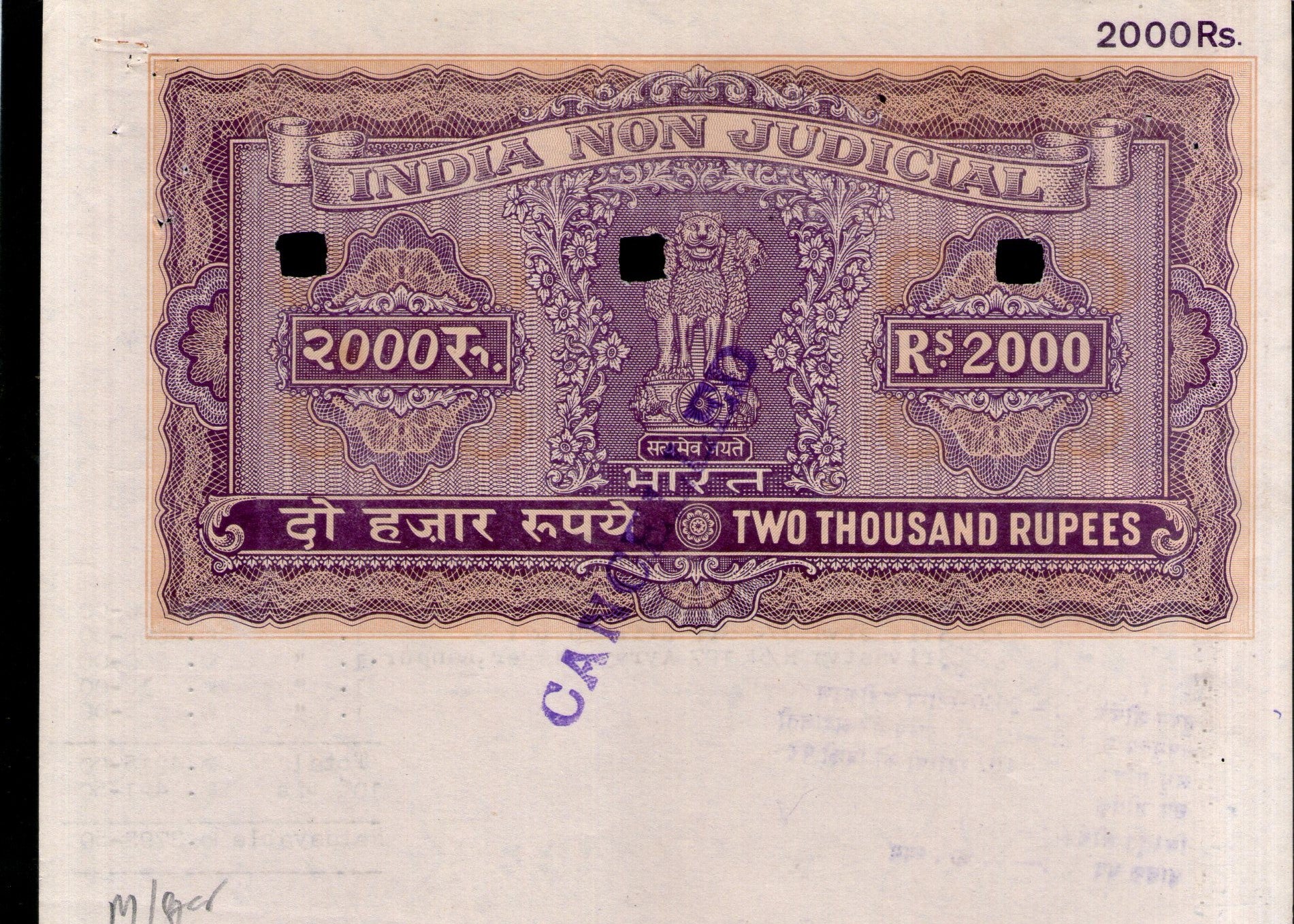 India Fiscal Rs.2000 Ashokan Stamp Paper Court Fee Revenue WMK-15 Good Used # 81C