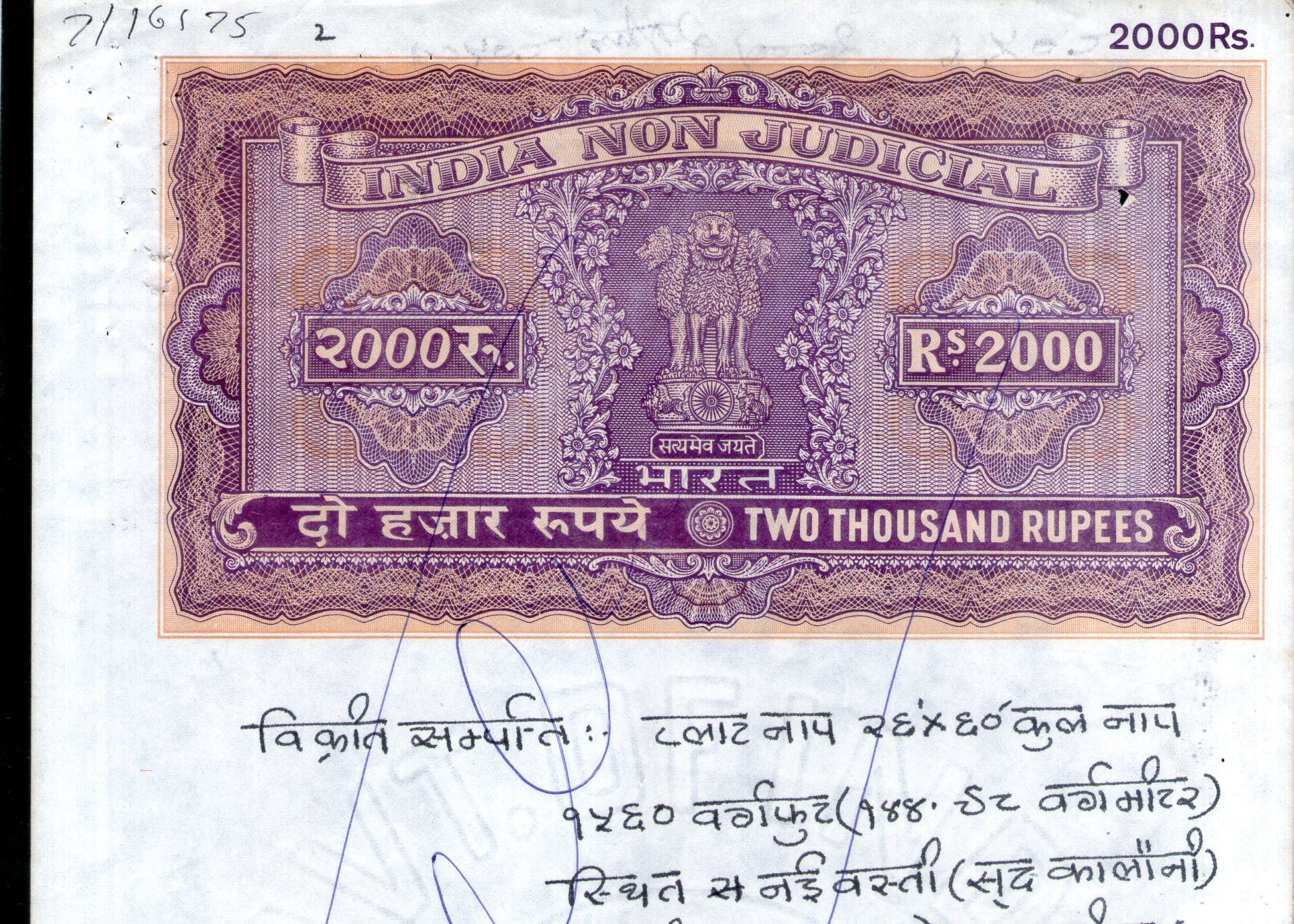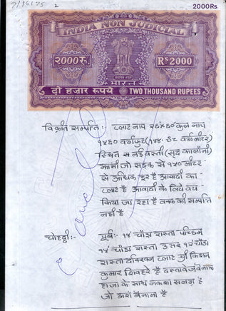 India Fiscal Rs.2000 Ashokan Stamp Paper Court Fee Revenue WMK-16 Good Used # 80C