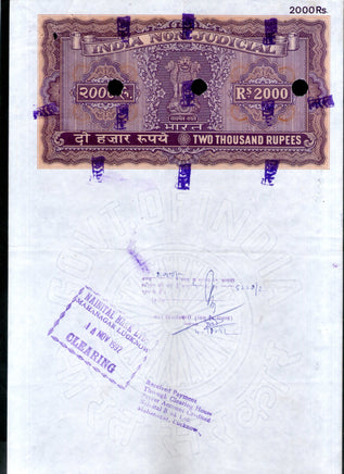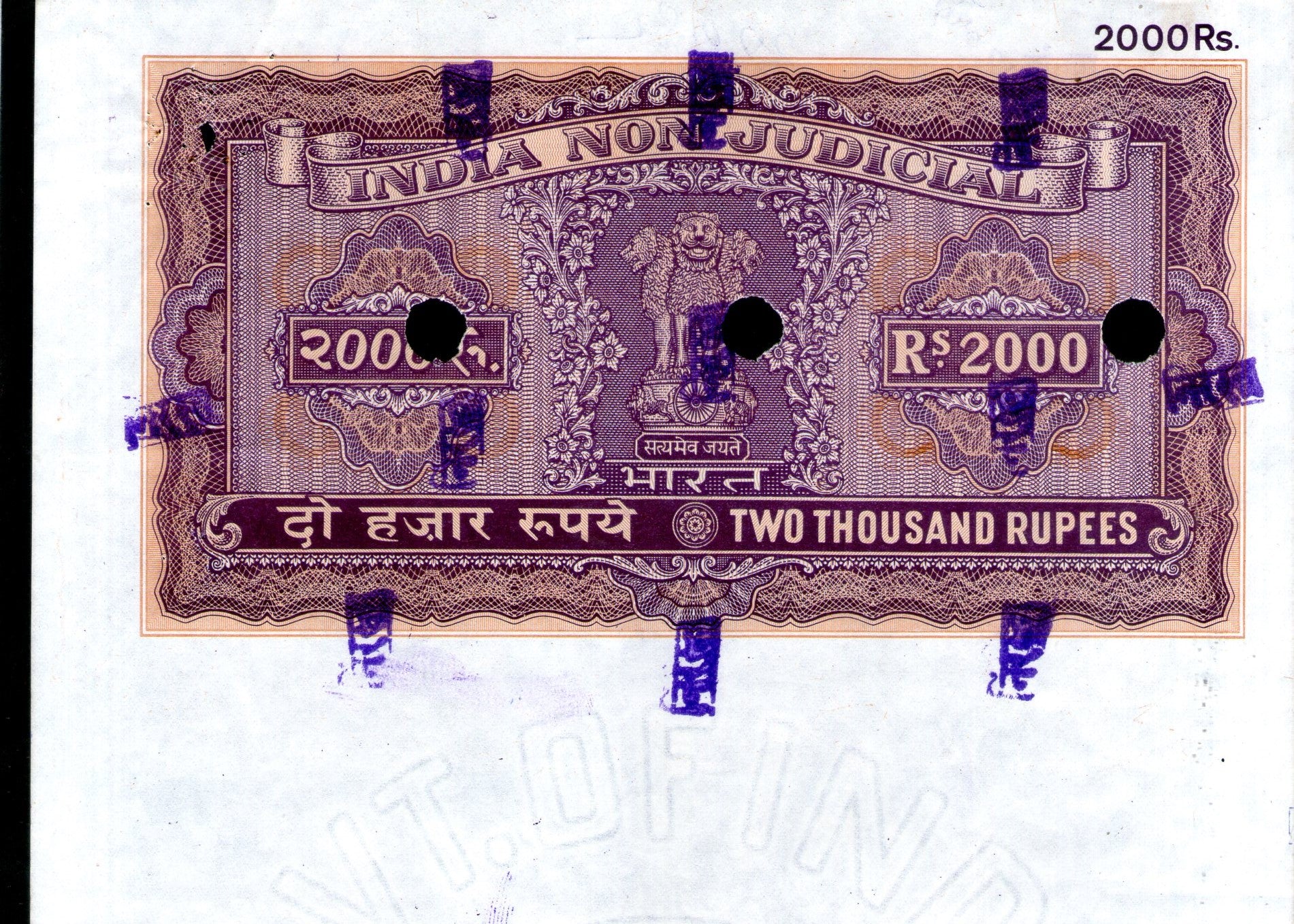 India Fiscal Rs.2000 Ashokan Stamp Paper Court Fee Revenue WMK-16 Good Used # 80F