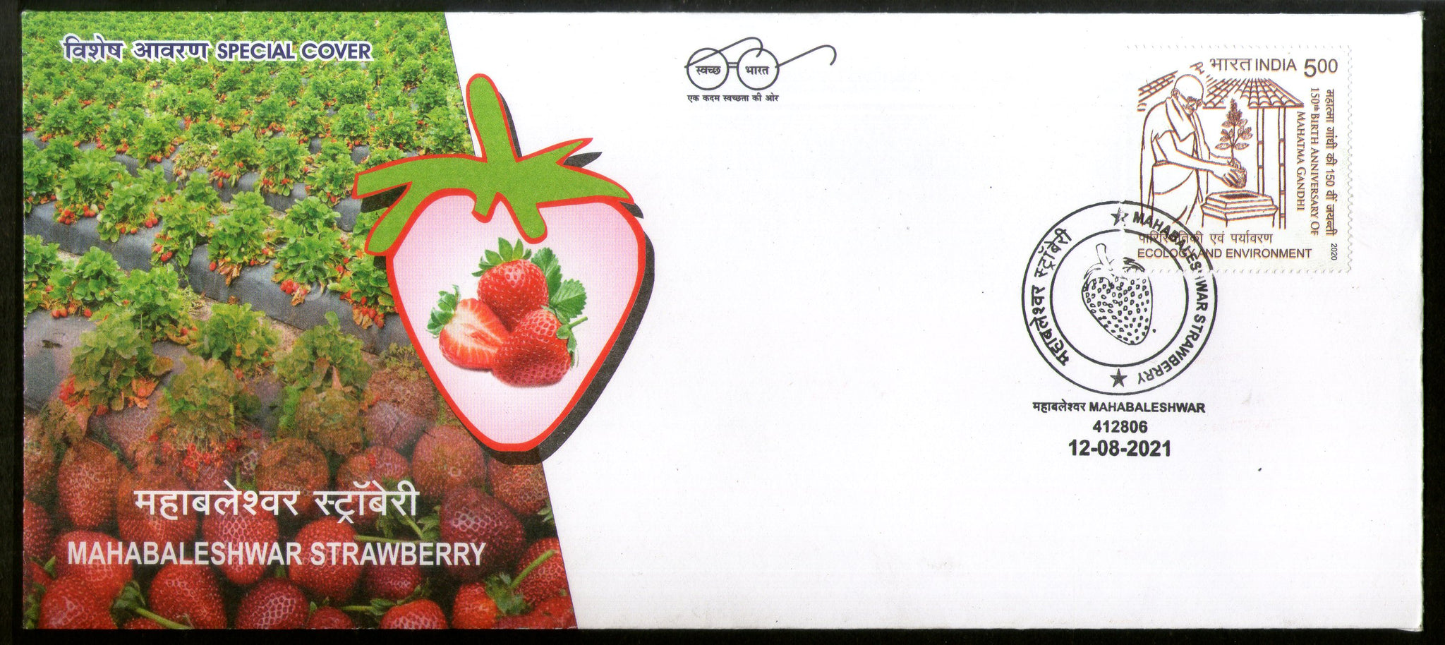 India 2021 Mahabaleshwar Strawberry Fruit Plant GI Tag Special Cover # 18645
