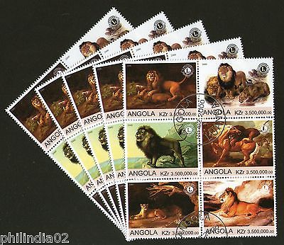 Angola 2000 African Lions Wild Life Animal Setenant BLK/6 Cancelled x5 # 13493